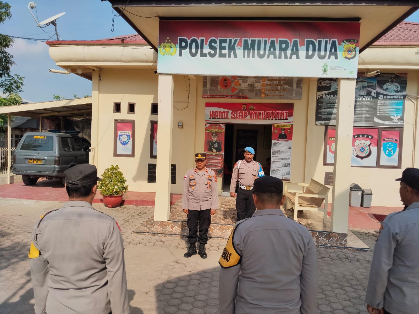 Lhokseumawe |Bijeh.com_  Jajaran Polsek Muara Dua melaksanakan kegiatan apel pagi pada Selasa (28/4/2026) sekitar pukul 08.30 WIB di halaman Mapolsek Muara Dua, Kecamatan Muara Dua, Kota Lhokseumawe.