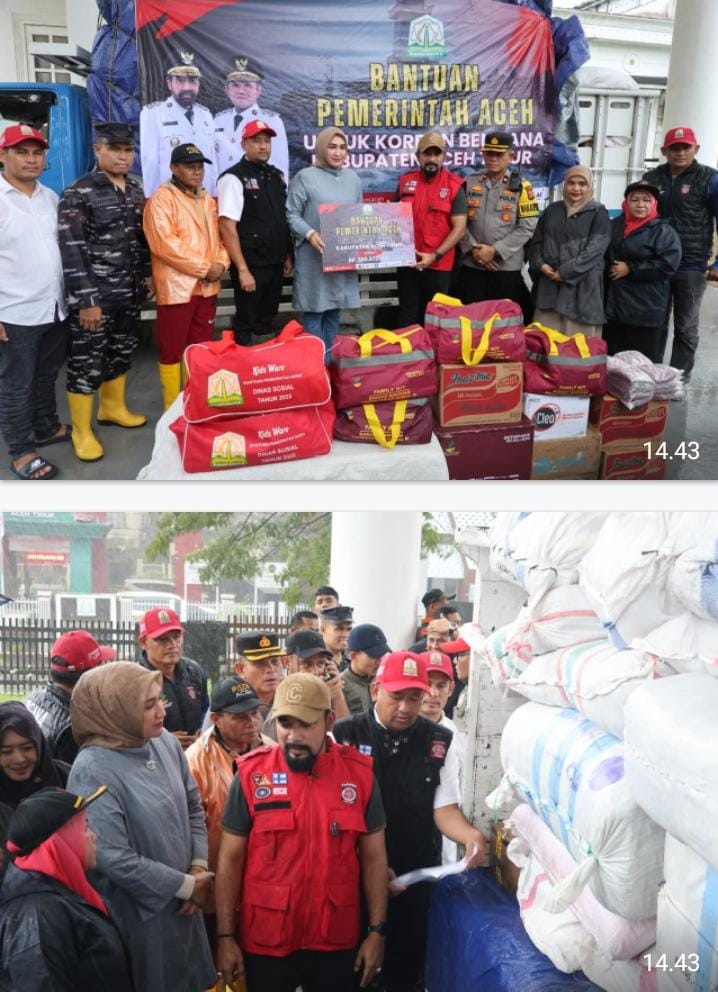 Aceh Timur Bijeh. com, — Pemerintah Aceh kembali menunjukkan komitmen dalam penanganan bencana dengan menyalurkan bantuan darurat ke Aceh Timur melalui pemanfaatan bufferstock Dinas Sosial Aceh. Rombongan dipimpin oleh Istri Gubernur Aceh yang juga Ketua TP PKK Aceh, Ny. Marlina Muzakir, bersama Plt. Kepala Dinas Sosial Aceh, Chaidir, S.E., M.M., Rabu 26/11/2025