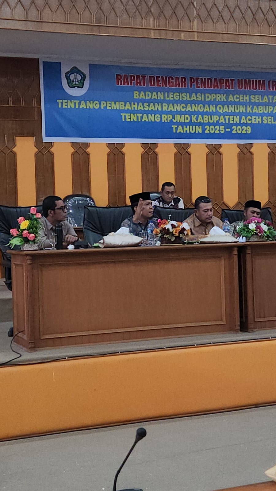 Tapaktuan |Bijeh.com – Rapat Dengar Pendapat Umum (RDPU) pembahasan Rancangan Qanun tentang Rencana Pembangunan Jangka Menengah Daerah (RPJMD) 2025-2030 di DPRK Aceh Selatan, Kamis 11 September 2024 mendadak menghangat. Pasalnya, anggota DPRA Dapil IX, Hadi Surya, melontarkan serangkaian kritik tajam sekaligus peringatan keras agar arah pembangunan daerah tidak sekadar menjadi dokumen formalitas.
