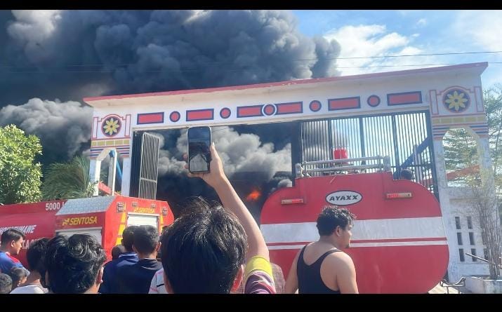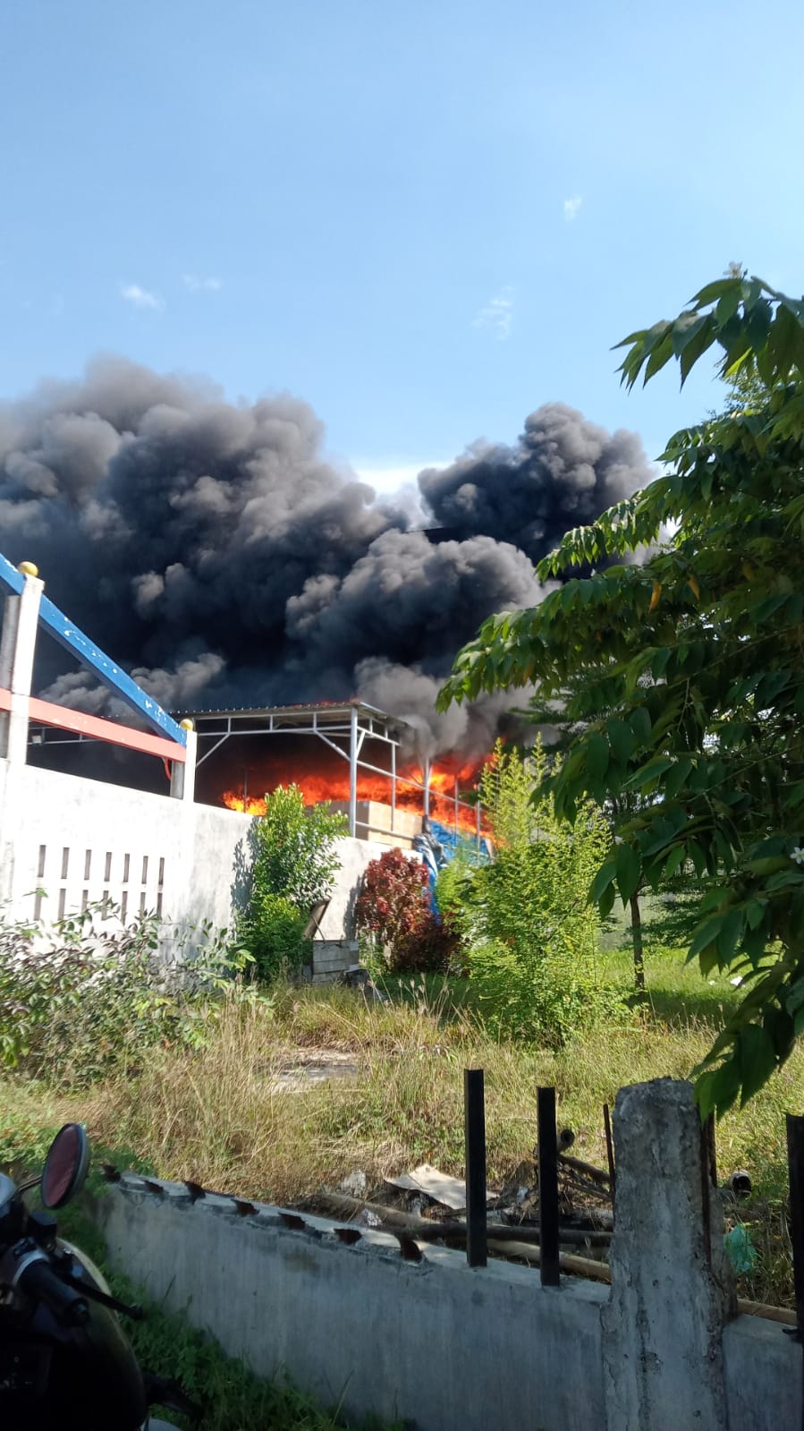 > “Tiba-tiba saja keluar asap tebal dari dalam gudang, lalu api semakin membesar,” kata seorang warga di lokasi kejadian.