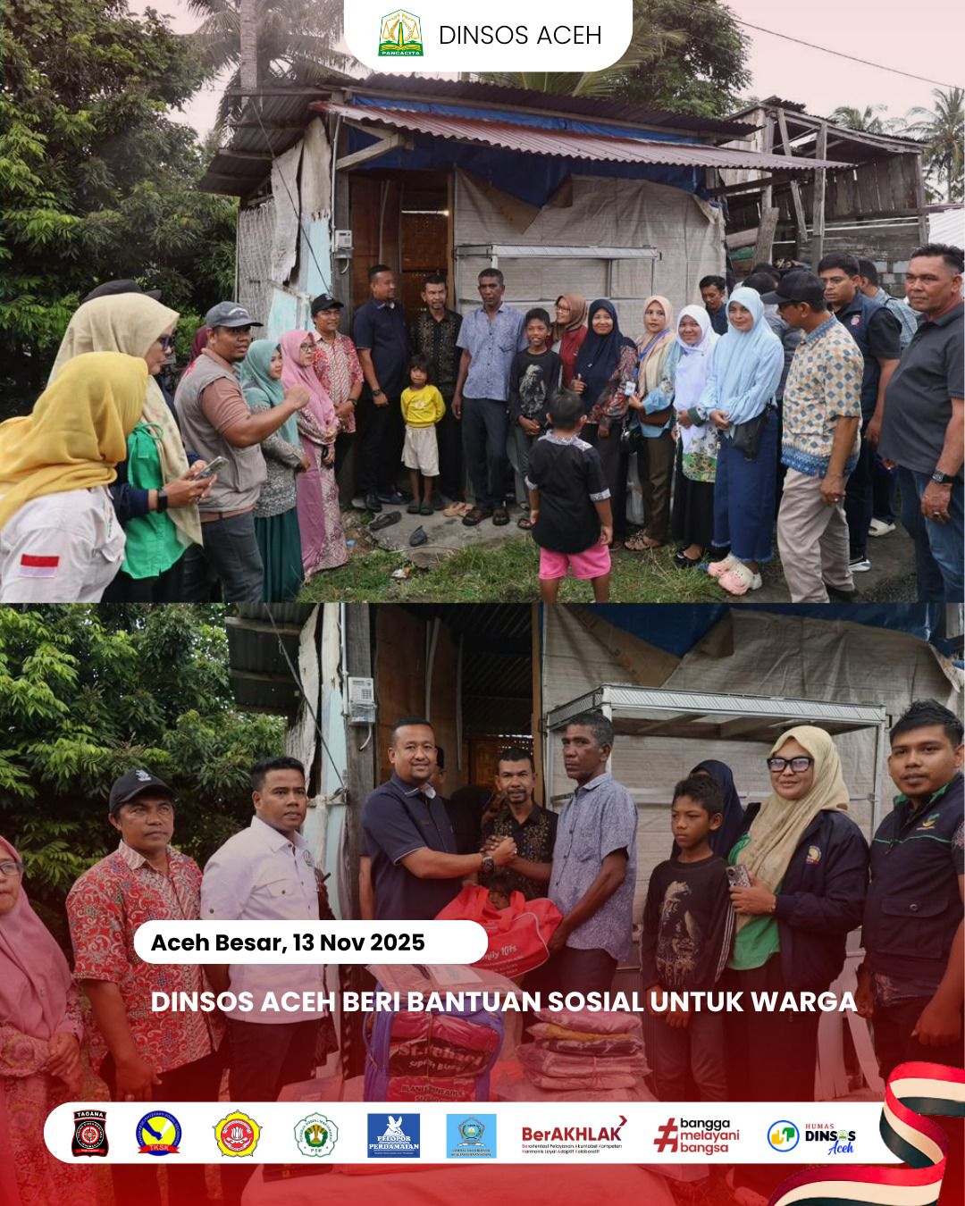 Mengetahui kondisi tersebut, Pemerintah Aceh melalui Dinas Sosial Aceh melakukan asesmen sosial dan penyaluran bantuan sandang kepada keluarga Amri serta warga rentan sosial lainnya di Kecamatan Peukan Bada, Kamis (13/11/2025).