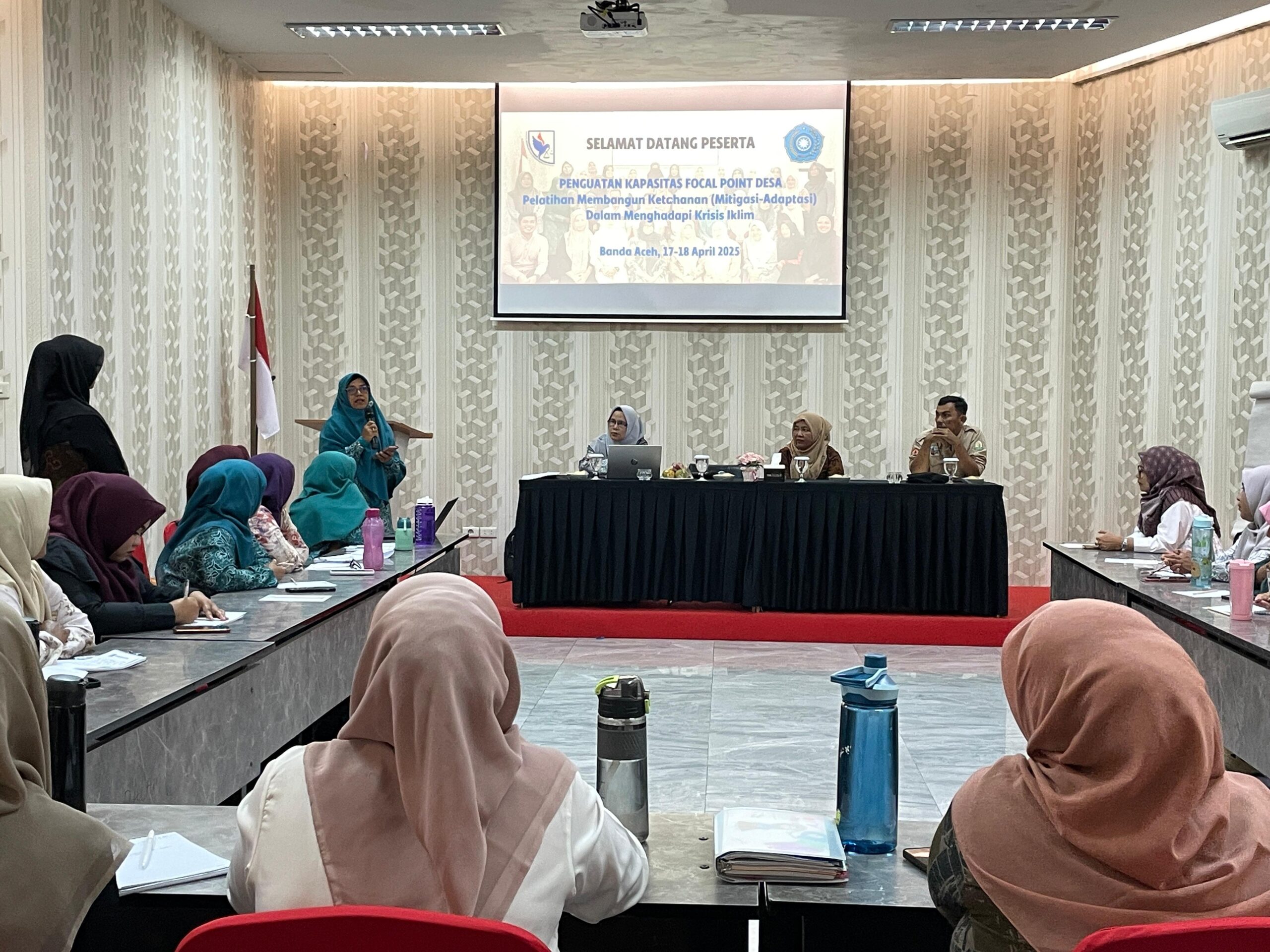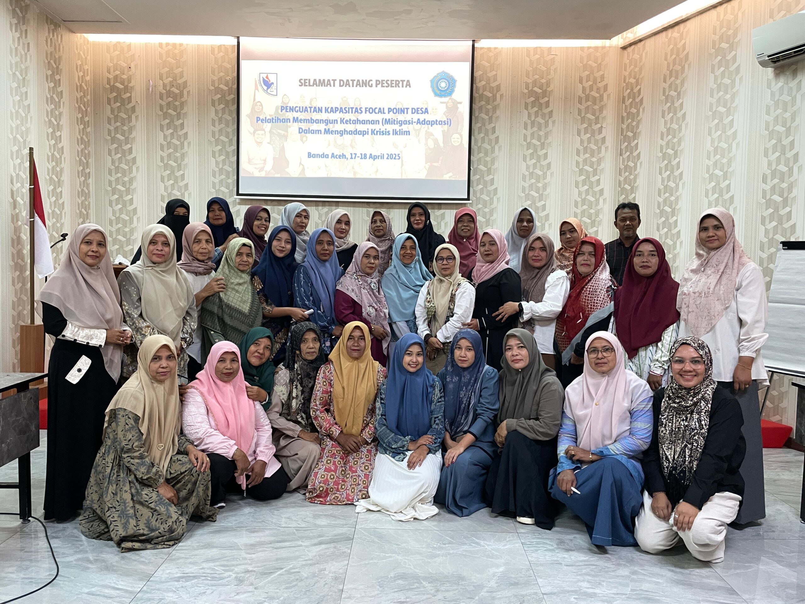 Kegiatan yang dilakukan melalui pelatihan dua hari (17-18 April 2025) ini bertempat di Hotel Seventeen melibatkan 33 orang Tim Penggerak PKK Kecamatan dan 8 Desa di Kecamatan Lhoknga, Aceh Besar. Acara dimulai dengan seminar yang menghadirkan tiga narasumber perwakilan Akademisi-UIN Ar Raniry, Forum PRB Aceh, dan Perwakilan Tim Sadgas Desa Mon Ikeun, Kec. Lhoknga.