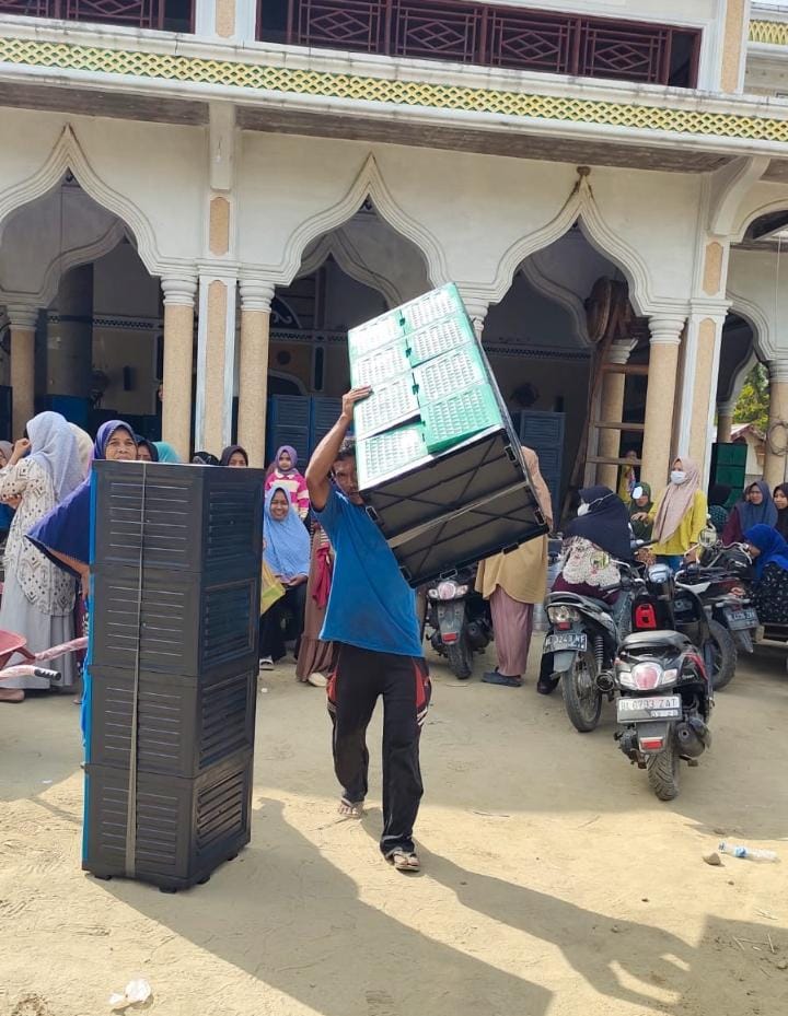 Sejak pagi, warga sudah berkumpul dengan penuh harap. Setelah menerima lemari, mereka tanpa menunggu lama langsung membawanya pulang. Senyum, rasa syukur, dan kebanggaan terlihat jelas di wajah mereka.