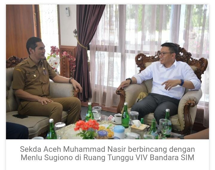 Menlu Sugiono tampak berbincang santai dengan Sekda Aceh dan Danlanud di ruang tunggu VIP Bandara SIM. Dalam pertemuan singkat tersebut, mereka membahas sejumlah hal penting, mulai dari perkembangan situasi nasional hingga berbagai persoalan strategis di Aceh.